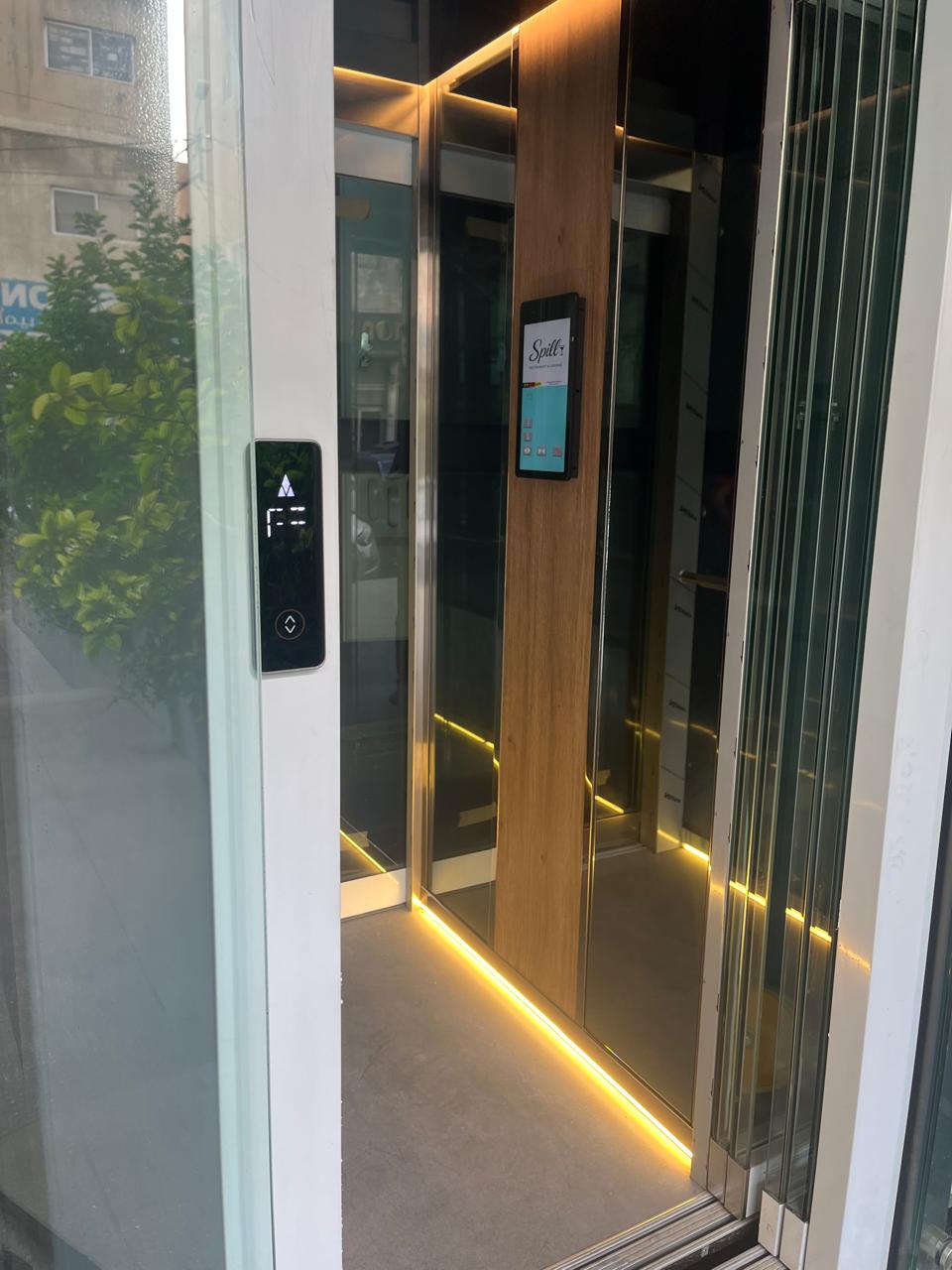 Visit the installation on-site and experience the Spill entrance elevator firsthand.